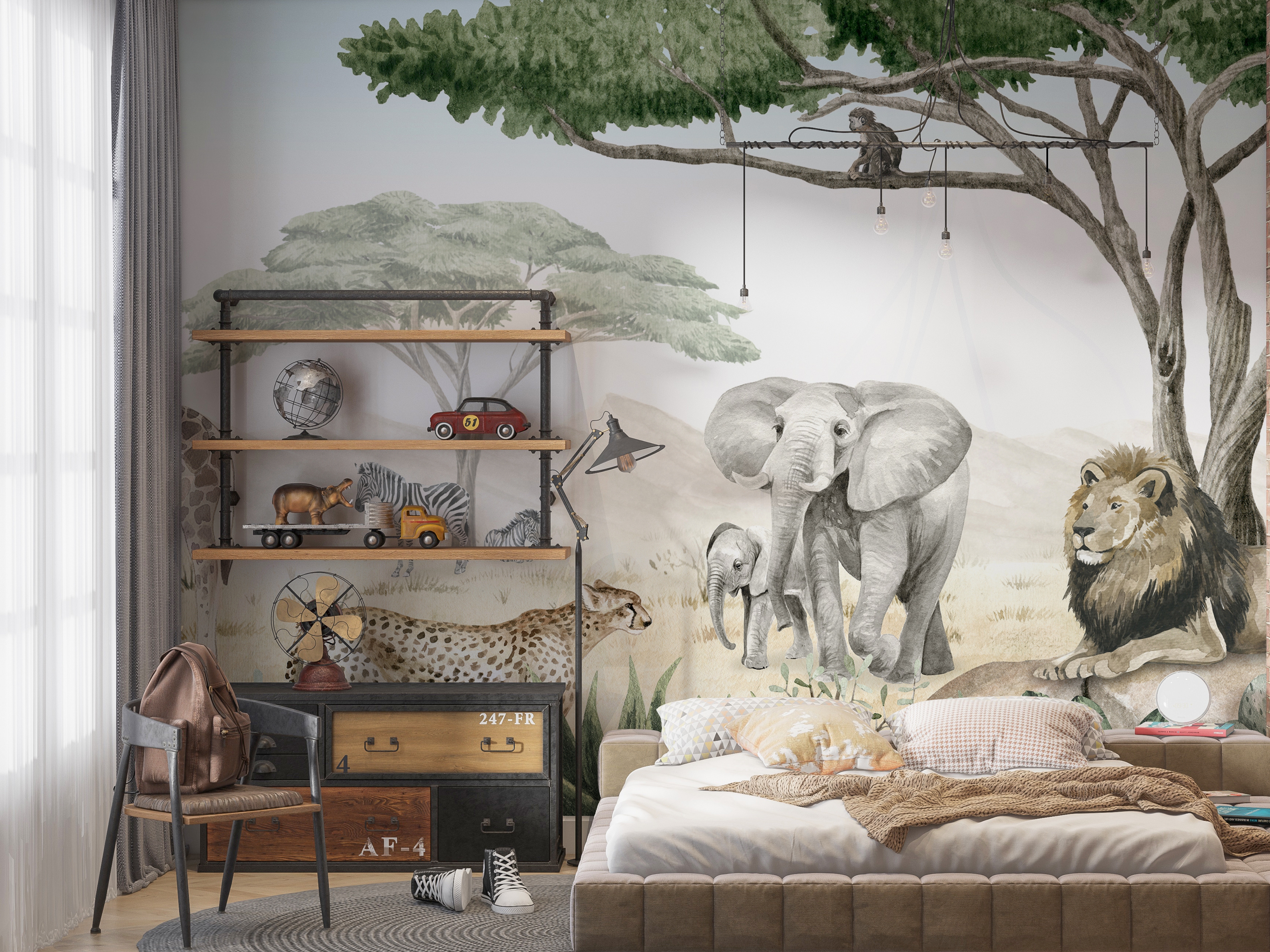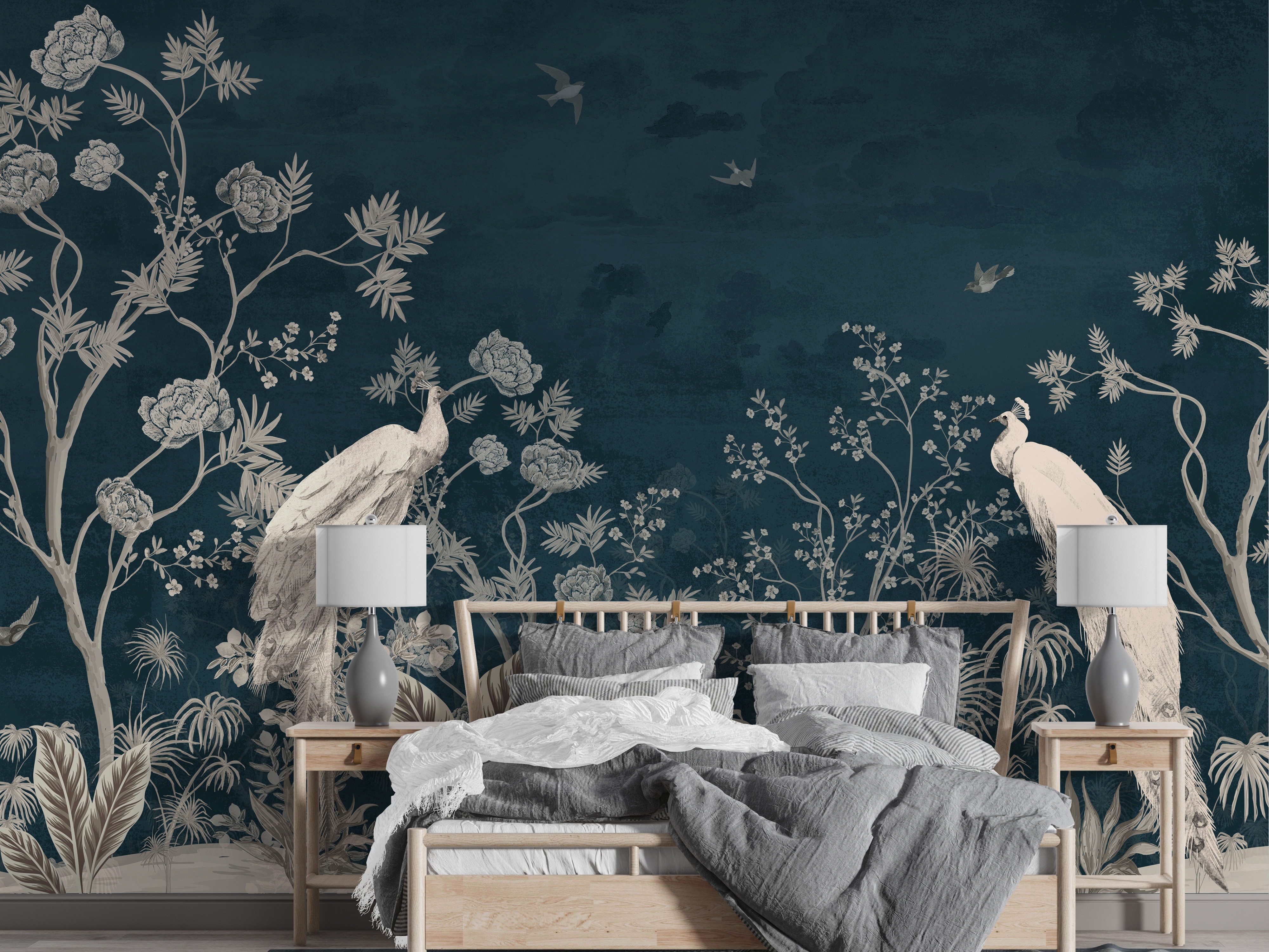 Integrating wildlife into the mural design adds movement and character. Whether it's majestic birds in flight, subtle deer grazing in a meadow, or playful monkeys swinging through the branches, animal wallpaper themes bring a lively element to the wall. This is a particularly strong choice for children’s rooms or eccentric living spaces, as the depicted fauna encourages narrative and imagination, making the room feel more dynamic and personal.