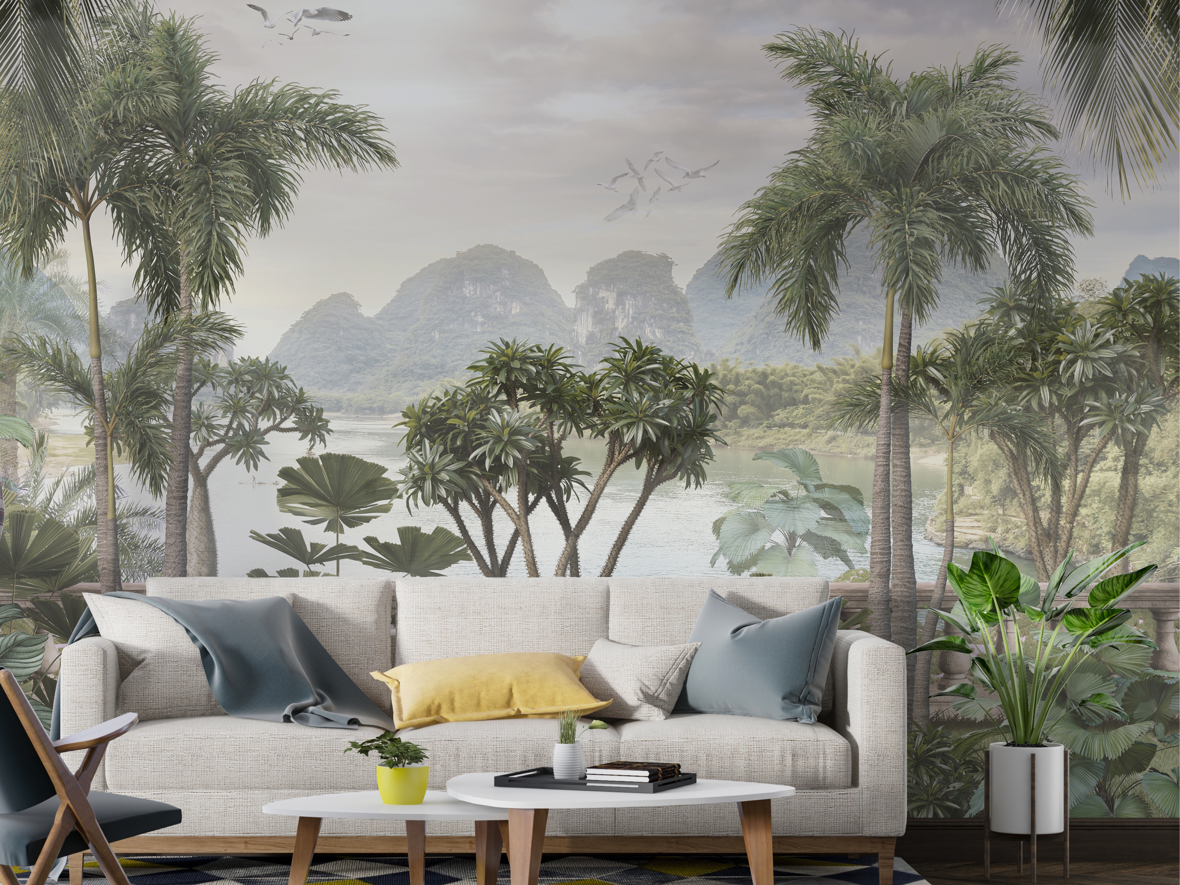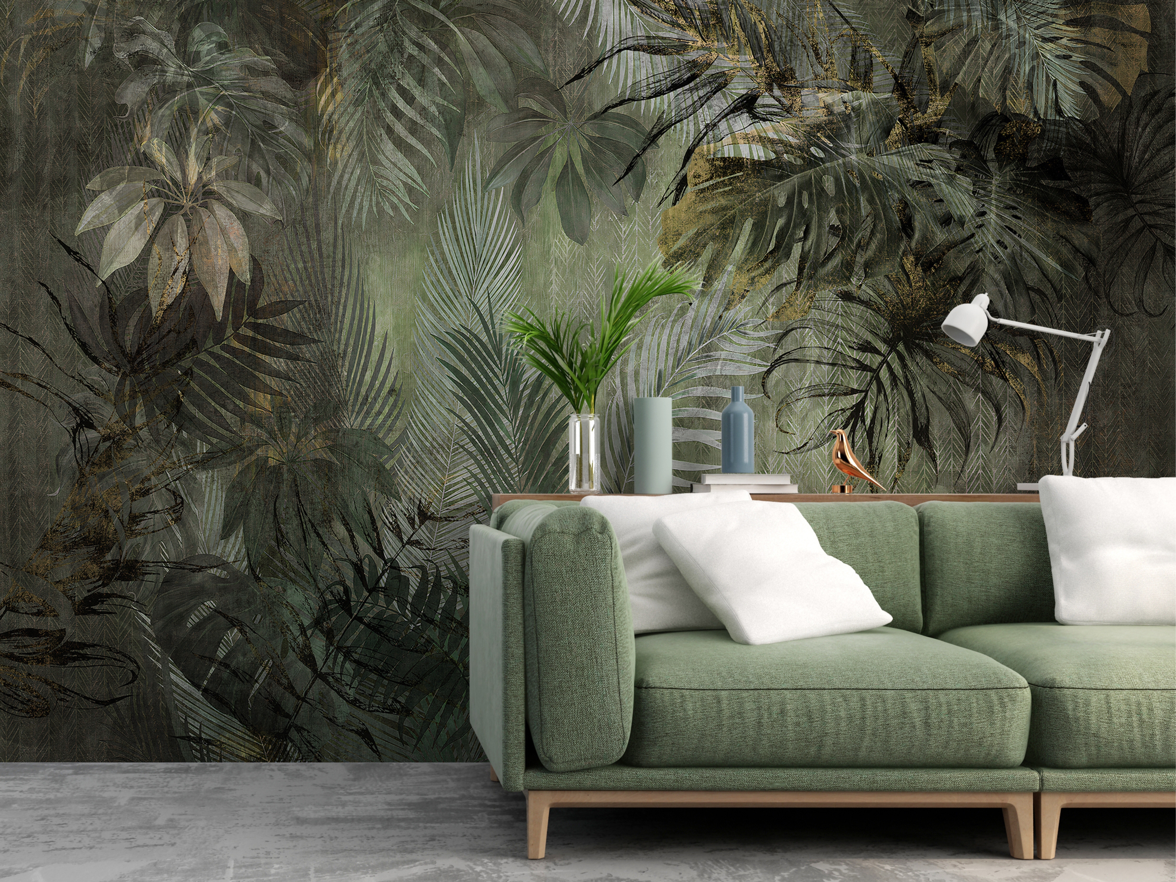Contrasting the quiet forest, tropical scenes bring energy, vibrancy, and drama. A detailed jungle wallpaper is perfect for spaces meant for entertaining or high activity, such as dining rooms or powder rooms. With lush, oversized leaves, rich greens, and vibrant accents of color, these murals create an exotic, adventurous mood. They signal a bold, confident approach to design and a commitment to filling the home with life and excitement.